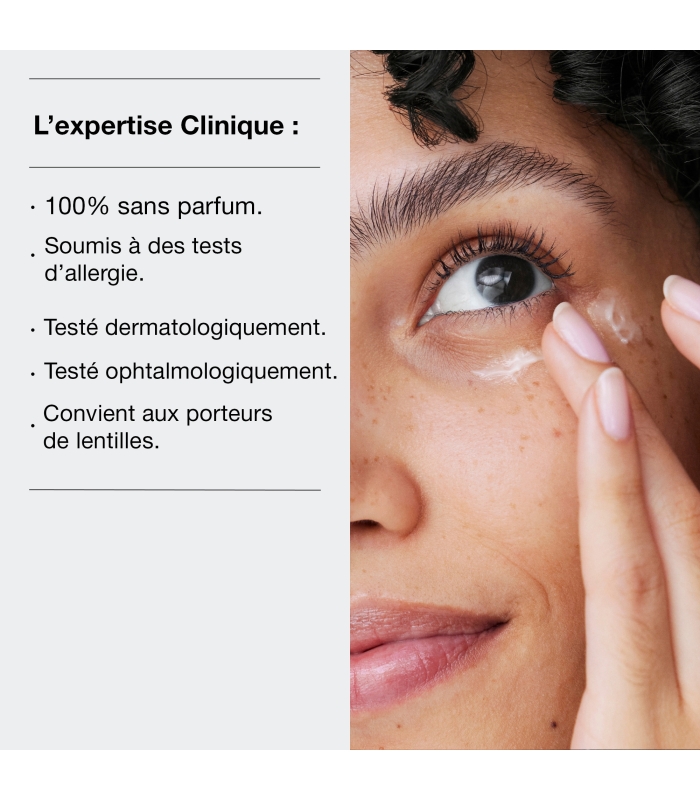 Ce soin hydrate la peau délicate du contour de l’œil et aide à réduire l'apparence des poches, des cernes et des ridules de déshydratation. Sa texture gel-crème rafraîchissante pénètre rapidement et favorise la tenue du maquillage sur les yeux. La peau du contour de l’œil est douce et visiblement plus lumineuse. Existe aussi en texture baume riche pour les peaux très déshydratées.