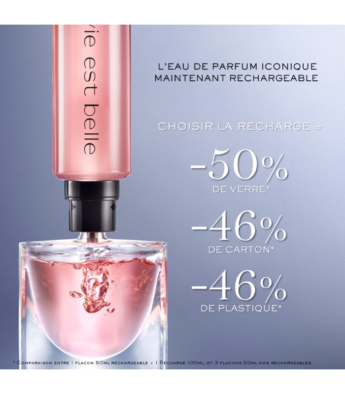 La Vie Est Belle est une invitation à rendre la vie plus belle, chaque jour. Flacon maintenant rechargeable grâce à la nouvelle recharge 100ml.