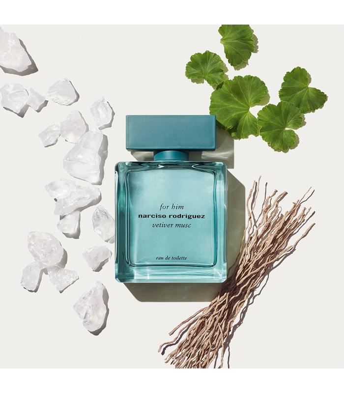 Pour ce nouvel opus, le flacon de for him vetiver musc se pare des couleurs de la nature : un vert d'eau tout en transparence qui fait écho au caractère minéral du parfum qu'il contient. Son esthétique rafraîchissante casse les codes en réinterprétant l'emblématique flacon de for him bleu noir de Narciso Rodriguez. Son design raffiné est surmonté d'un capot assorti et rehaussé d'un fini mat résolument élégant.