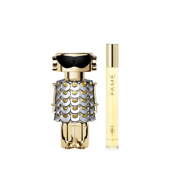 Pour la Saint-Valentin, célébrez l'amour en offrant un coffret inspiré du mesh-métal iconique de la Maison Rabanne. Découvrez Fame Eau de Parfum 50 ml et son vaporisateur de Voyage 10ml.Quintessence du luxe avant-gardiste, ce parfum est un mélange...