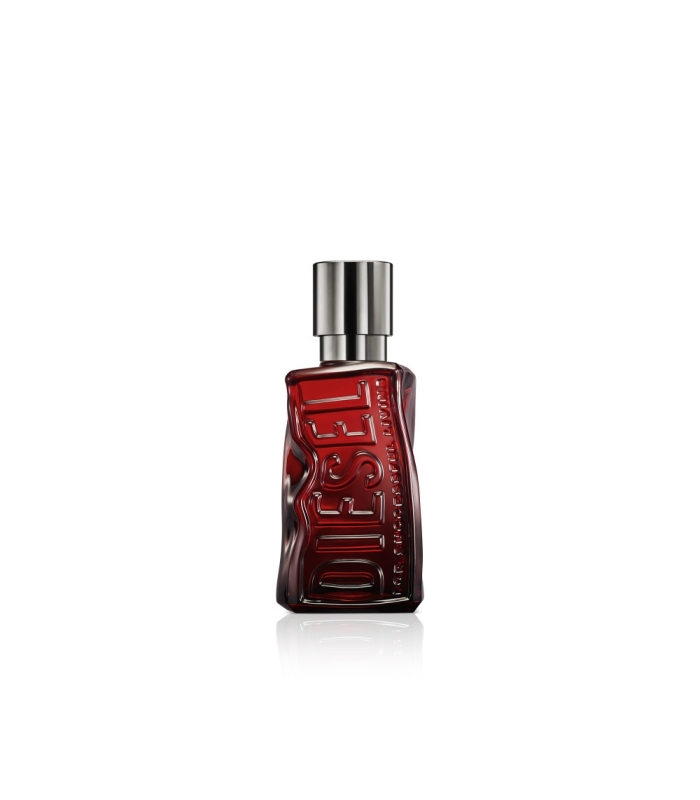 L'énergie vibrante du rouge DIESEL rencontre l'obscurité captivante de la nuit et le flacon de D RED LE PARFUM se pare d'un dégradé noir intense et élégant. Il se tord dans votre main, imprimant votre empreinte magnétique. Marqué du logo D, le capot s'inspire du rivet caractéristique des jeans Diesel.