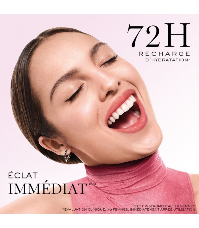 Sa formule enrichie en actifs hydro-apaisants offre une hydratation intense pendant 72h pour une peau apaisée(2).