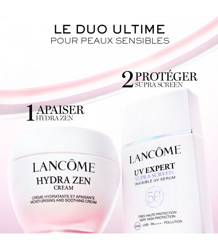 Les Laboratoires de Lancôme, inspirés de 30 ans de recherche en neuroscience, réinventent la Gel Crème Hydra Zen avec un complexe d’actifs hydro-apaisants puissants pour hydrater en profondeur, recharger et amplifier l'éclat de la peau.