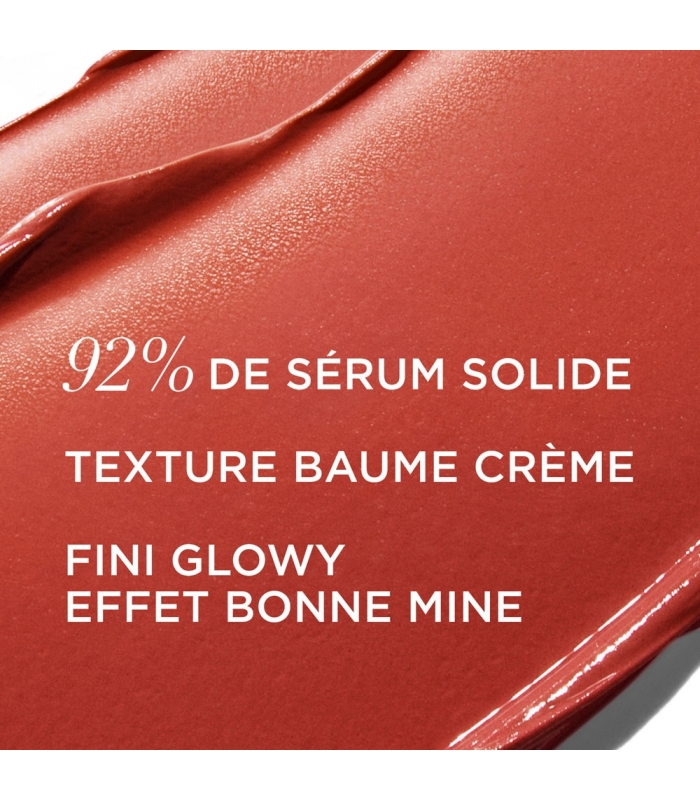 Rayonnez en toute confiance ! Notre combo blush + bronzer en un seul produit améliore votre routine de maquillage en vous apportant un éclat naturel dans une texture crème. Notre base de sérum de soin solide à 92 %, à base d’acide hyaluronique et de céramides, rencontre le mélange parfait de pigments bronzant pour un fini naturel et éclatant. Avec 3 teintes solaires modulables pour toutes les carnations, il se fond parfaitement au teint de votre peau tout en lui apportant de l'hydratation et en la lissant pour lui redonner de la dimension, de l'éclat et un aspect plus jeune. Appliquez à l’aide de vos doigts pour un effet bonne mine sur peau nue, ou par-dessus votre fond de teint pour réveiller votre maquillage.