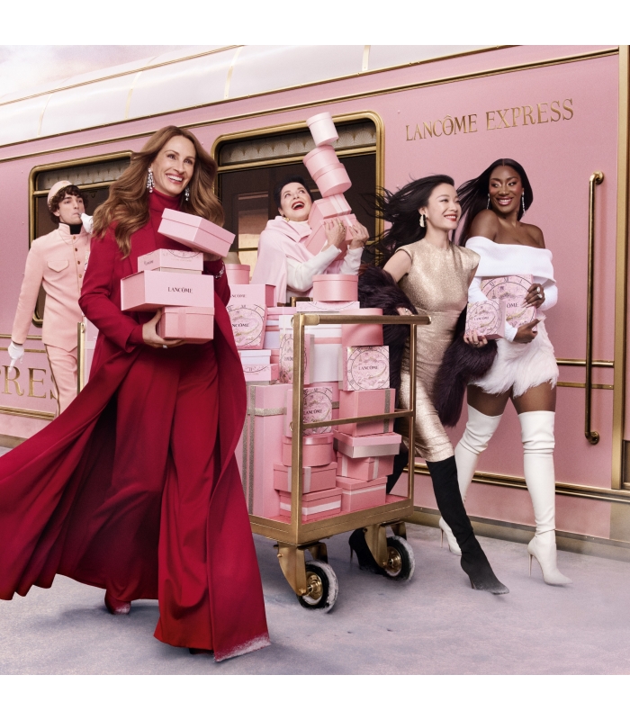 Embarquez pour un voyage féérique et enneigé à bord du train Lancôme Express. Destination : le bonheur. Laissez-vous transporter par la magie des fêtes de fin d'année avec nos coffrets en édition limitée dessinés par l’artiste Safia Ouares.