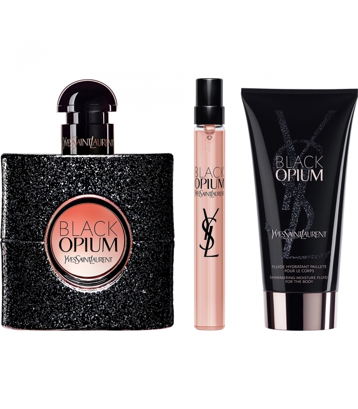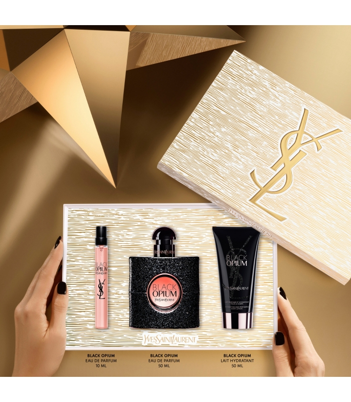 YSL Beauté vous invite à célébrer des fêtes de fin d’année plus Couture que jamais. Offrez ce magnifique coffret paré d'or brossé contenant : l'Eau de Parfum Black Opium 50 ml, l'Eau de Parfum Black Opium 10 ml format voyage et la crème pour le corps Black Opium 50 ml. Préparez-vous à briller pour la nuit la plus attendue de l'année.
