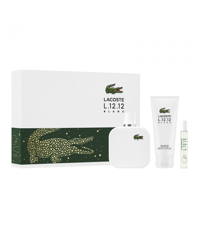 Ce coffret contient une Eau de Toilette L.12.12 Blanc 100ml, un Vaporisateur de Voyage 7,5ml ainsi qu'un Gel Douche 100ml.