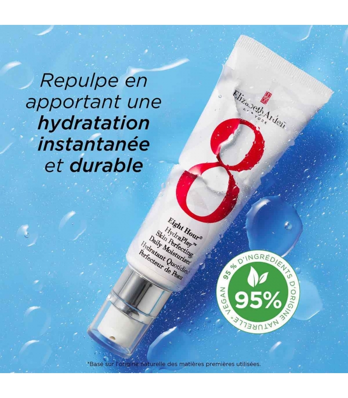 Hydratation & repulpant : grâce à la glycérine et l’acide hyaluronique, la peau est intensément hydratée et rebondie.