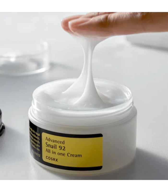 Grâce à la mucine d’escargot, cette crème favorise la cicatrisation, atténue les rougeurs et aide à restaurer la barrière cutanée, tout en procurant une hydratation longue durée. Sa formule légère et non grasse pénètre rapidement, laissant la peau douce, souple et revitalisée sans effet collant.