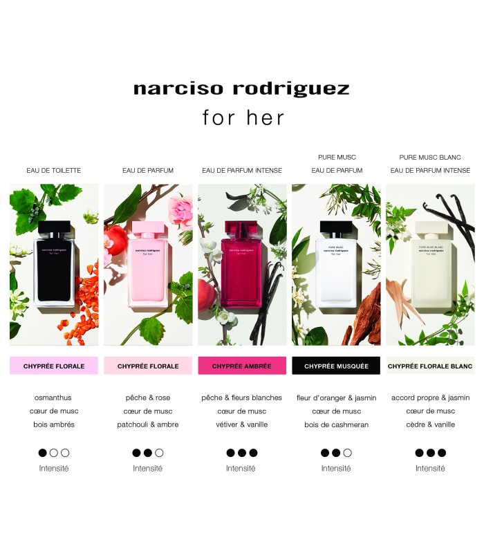 Pour cette nouvelle eau de parfum intense vegan, la parfumeuse Sonia Constant a sublimé le cœur de musc signature de Narciso Rodriguez, créant un halo de lumière et de sensualité.