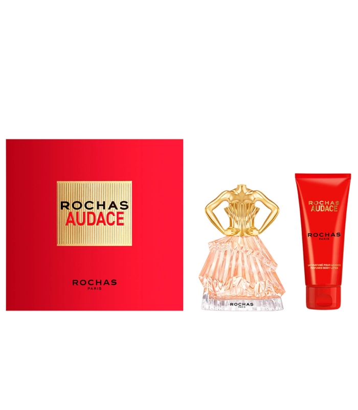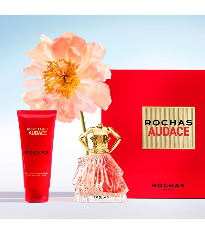 Ce coffret contient une Eau de Parfum Rochas Audace 60ml ainsi qu'un Lait Corps 100ml.